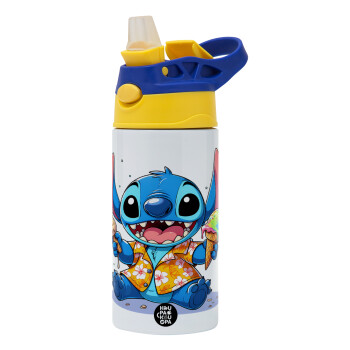Stitch Ice cream, Children's hot water bottle, stainless steel, with safety straw, green, blue (360ml) BPA FREE