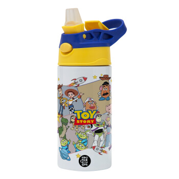 toystory characters, Children's hot water bottle, stainless steel, with safety straw, green, blue (360ml) BPA FREE