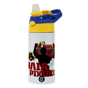 Ηλία ρίχτο!, Children's hot water bottle, stainless steel, with safety straw, green, blue (360ml) BPA FREE