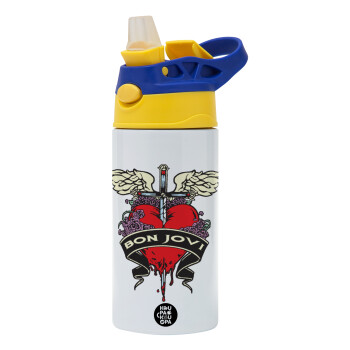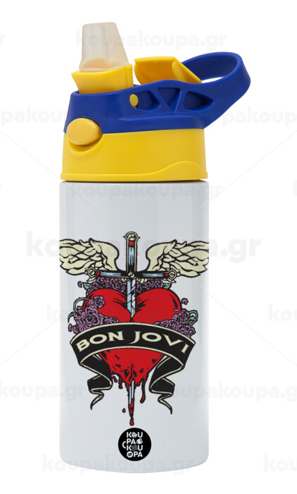 Bon Jovi, Children's hot water bottle, stainless steel, with safety straw, green, blue (360ml) BPA FREE