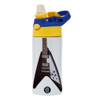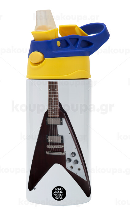 Guitar flying V, Children's hot water bottle, stainless steel, with safety straw, green, blue (360ml) BPA FREE