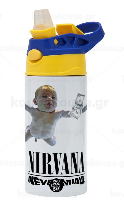 Nirvana nevermind, Children's hot water bottle, stainless steel, with safety straw, green, blue (360ml) BPA FREE