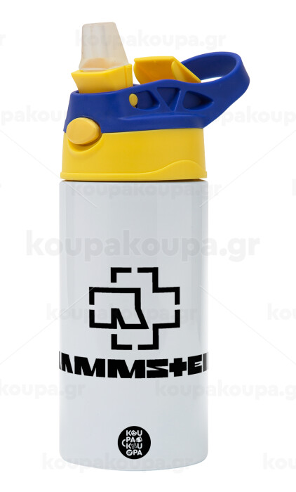 Rammstein, Children's hot water bottle, stainless steel, with safety straw, green, blue (360ml) BPA FREE