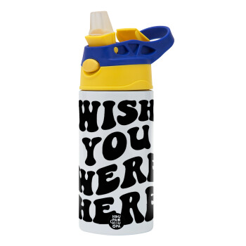 Wish you were here, Children's hot water bottle, stainless steel, with safety straw, green, blue (360ml) BPA FREE