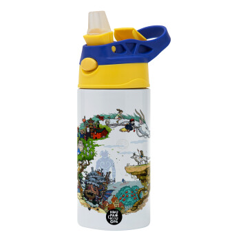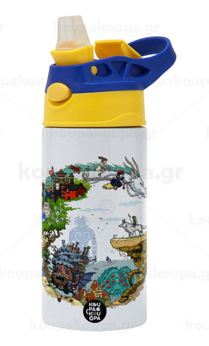 Στούδιο Γκίβλι, Children's hot water bottle, stainless steel, with safety straw, green, blue (360ml) BPA FREE