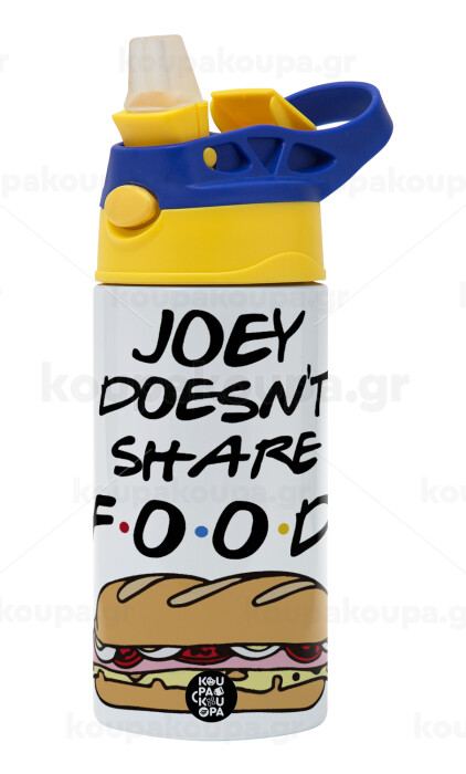 Joey Doesn't Share Food, Children's hot water bottle, stainless steel, with safety straw, green, blue (360ml) BPA FREE