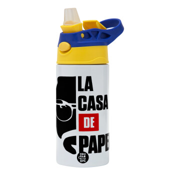 La casa de papel, Children's hot water bottle, stainless steel, with safety straw, green, blue (360ml) BPA FREE