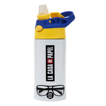 la professor, γυαλιά, Children's hot water bottle, stainless steel, with safety straw, green, blue (360ml) BPA FREE