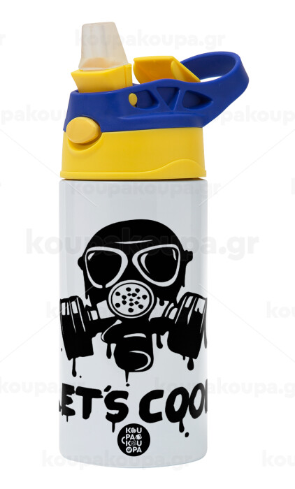 Let's cook mask, Children's hot water bottle, stainless steel, with safety straw, green, blue (360ml) BPA FREE