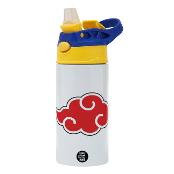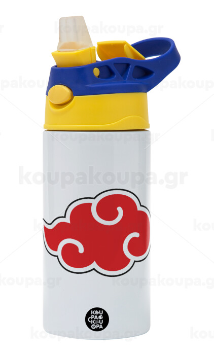 Naruto Akatsuki Cloud, Children's hot water bottle, stainless steel, with safety straw, green, blue (360ml) BPA FREE