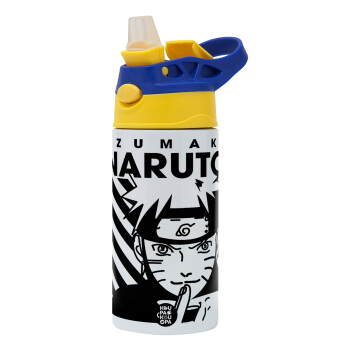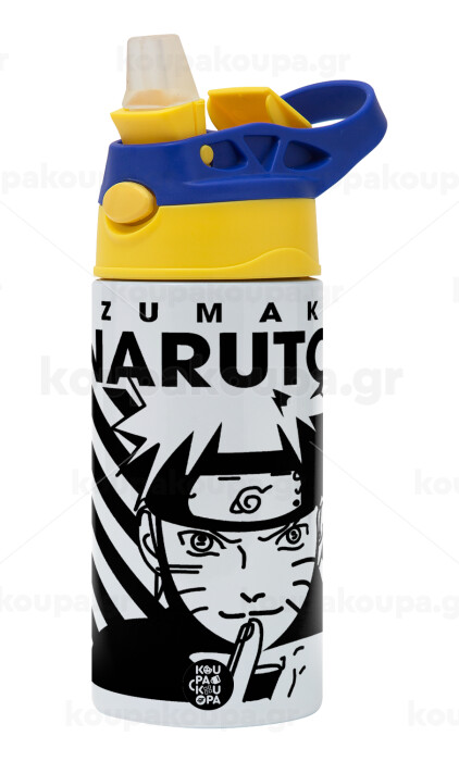 Naruto uzumaki, Children's hot water bottle, stainless steel, with safety straw, green, blue (360ml) BPA FREE