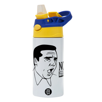 The office Michael NO!!!, Children's hot water bottle, stainless steel, with safety straw, green, blue (360ml) BPA FREE