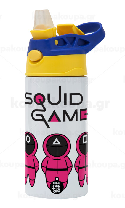 The squid game characters, Children's hot water bottle, stainless steel, with safety straw, green, blue (360ml) BPA FREE
