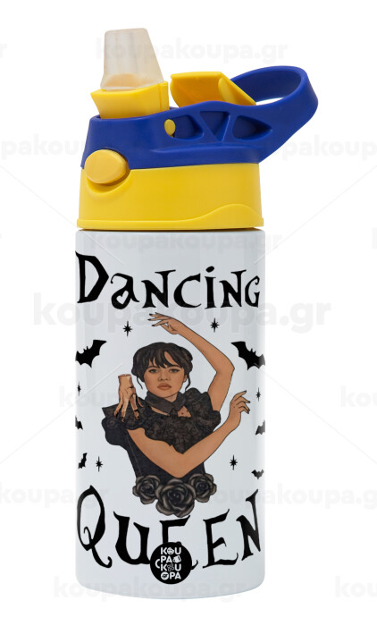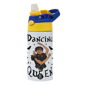Wednesday Addams Dance, Children's hot water bottle, stainless steel, with safety straw, green, blue (360ml) BPA FREE