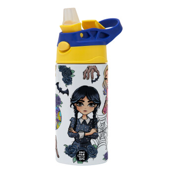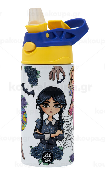 Wednesday and Enid Sinclair, Children's hot water bottle, stainless steel, with safety straw, green, blue (360ml) BPA FREE