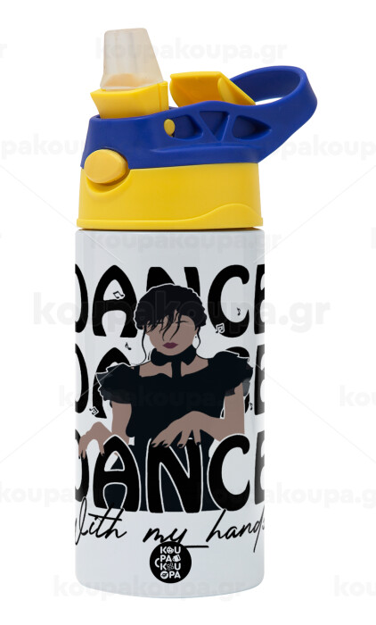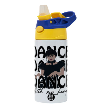 Wednesday dance dance dance, Children's hot water bottle, stainless steel, with safety straw, green, blue (360ml) BPA FREE