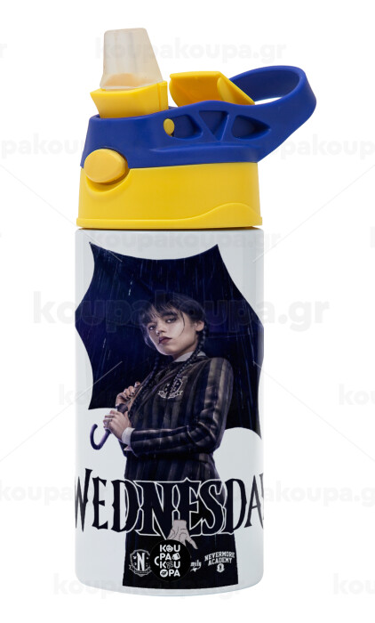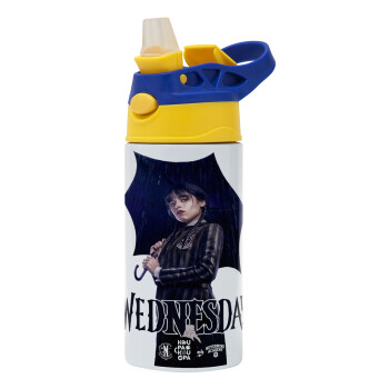 Wednesday rain, Children's hot water bottle, stainless steel, with safety straw, green, blue (360ml) BPA FREE