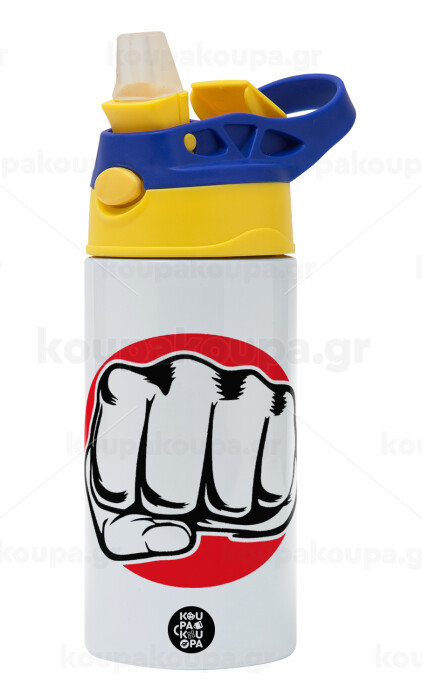 Punch, Children's hot water bottle, stainless steel, with safety straw, green, blue (360ml) BPA FREE