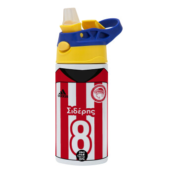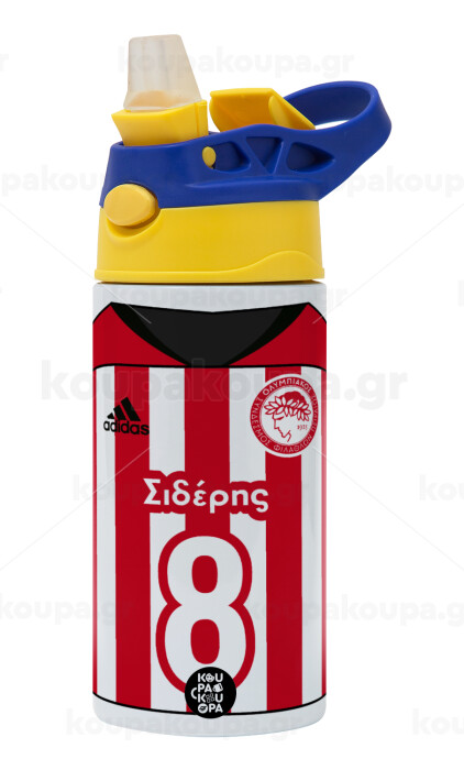 Ολυμπιακός εμφάνιση, Children's hot water bottle, stainless steel, with safety straw, green, blue (360ml) BPA FREE