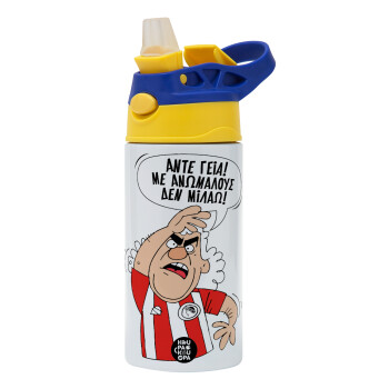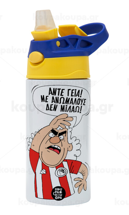 Τάκης, Άντε γεια, με ανώμαλους δεν μιλάω!, Children's hot water bottle, stainless steel, with safety straw, green, blue (360ml) BPA FREE