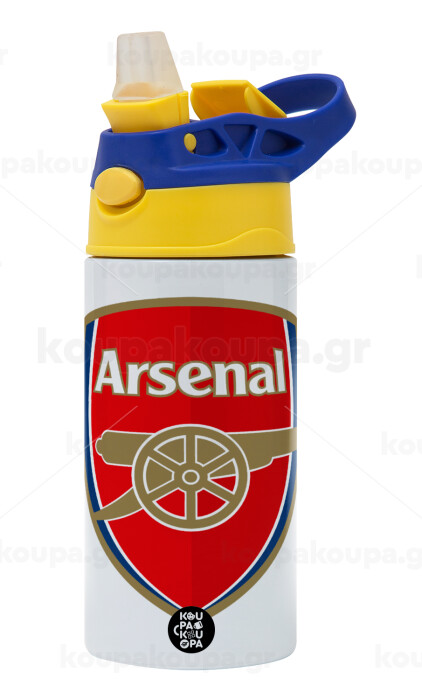 Arsenal, Children's hot water bottle, stainless steel, with safety straw, green, blue (360ml) BPA FREE