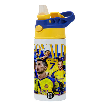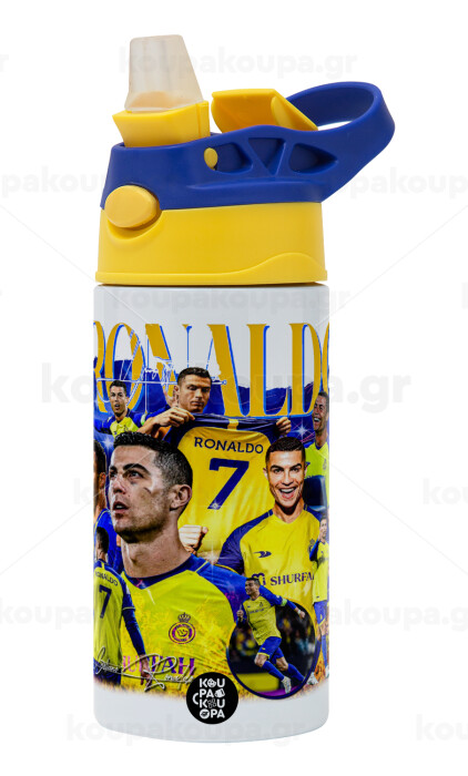 Cristiano Ronaldo Al Nassr, Children's hot water bottle, stainless steel, with safety straw, green, blue (360ml) BPA FREE