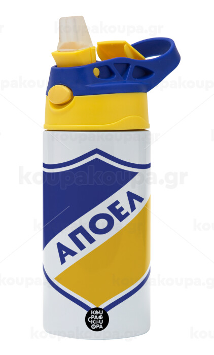 FC ΑΠΟΕΛ Λευκωσίας, Children's hot water bottle, stainless steel, with safety straw, green, blue (360ml) BPA FREE