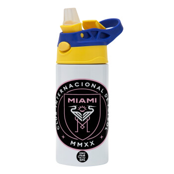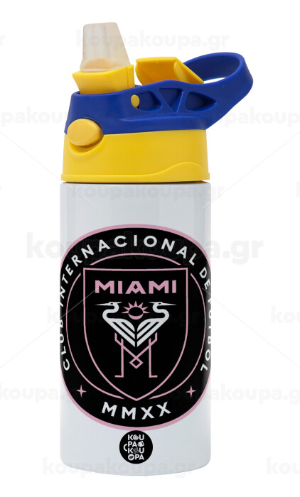 Inter Miami CF, Children's hot water bottle, stainless steel, with safety straw, green, blue (360ml) BPA FREE