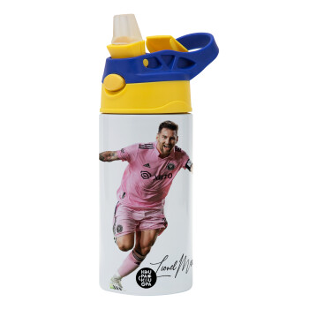 Lionel Messi inter miami jersey, Children's hot water bottle, stainless steel, with safety straw, green, blue (360ml) BPA FREE