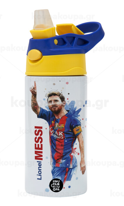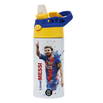 Lionel Messi, Children's hot water bottle, stainless steel, with safety straw, green, blue (360ml) BPA FREE