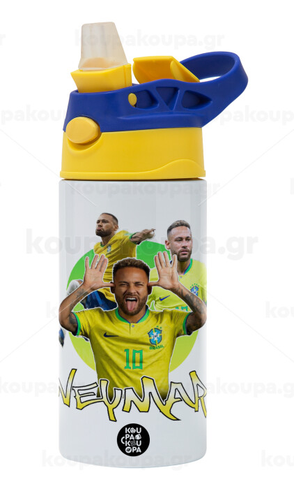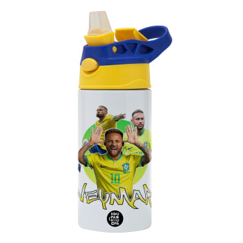 Neymar JR, Children's hot water bottle, stainless steel, with safety straw, green, blue (360ml) BPA FREE