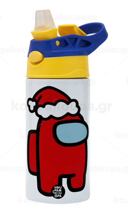 Among US Santa, Children's hot water bottle, stainless steel, with safety straw, green, blue (360ml) BPA FREE