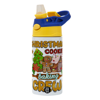 Christmas Cookie Baking Crew, Children's hot water bottle, stainless steel, with safety straw, green, blue (360ml) BPA FREE