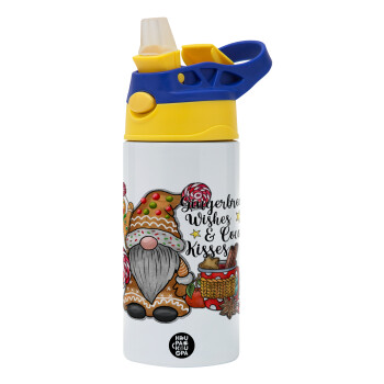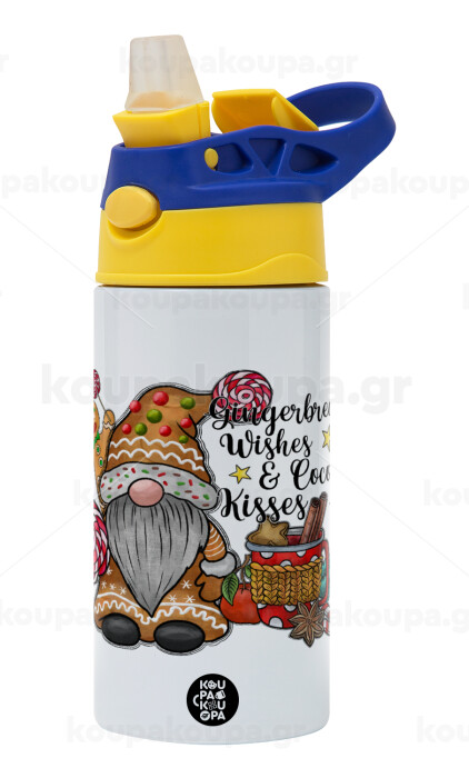 Gingerbread Wishes, Children's hot water bottle, stainless steel, with safety straw, green, blue (360ml) BPA FREE