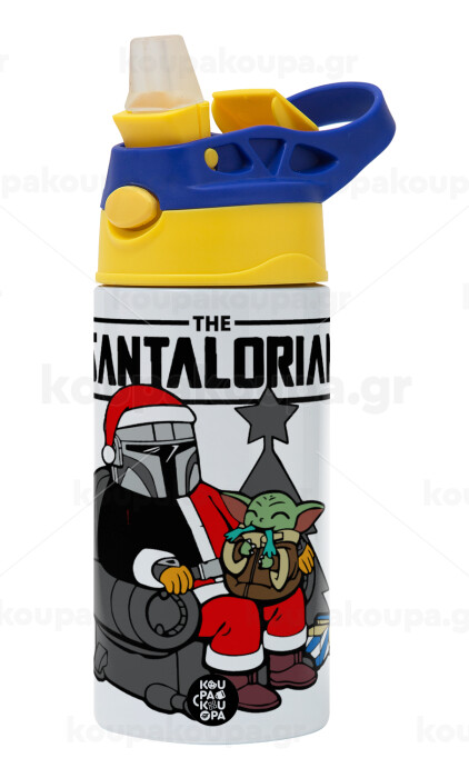 Star Wars Santalorian, Children's hot water bottle, stainless steel, with safety straw, green, blue (360ml) BPA FREE