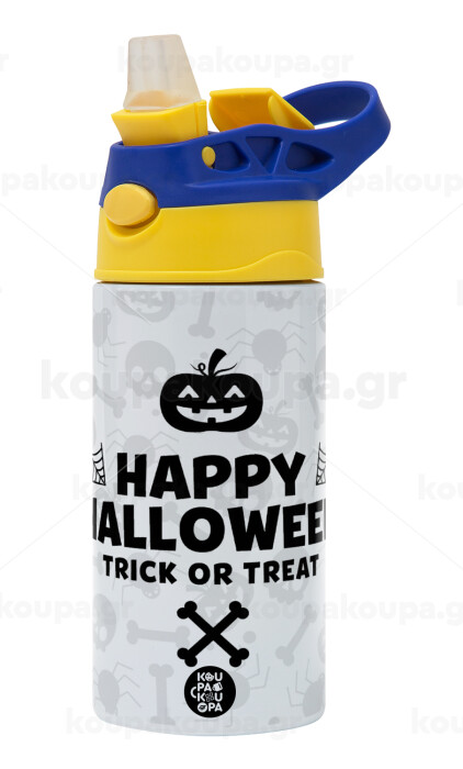 Happy Halloween pumpkin, Children's hot water bottle, stainless steel, with safety straw, green, blue (360ml) BPA FREE