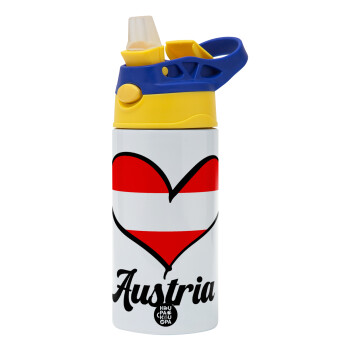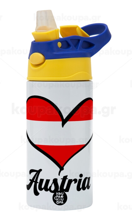 Austria flag, Children's hot water bottle, stainless steel, with safety straw, green, blue (360ml) BPA FREE