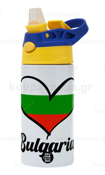 Bulgaria flag, Children's hot water bottle, stainless steel, with safety straw, green, blue (360ml) BPA FREE