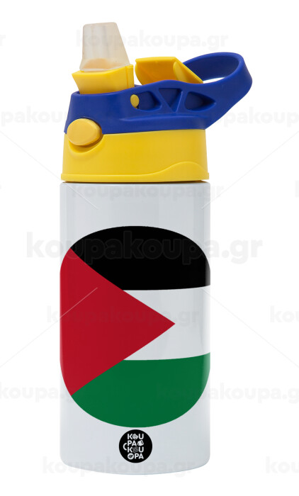 Palestine Flag, Children's hot water bottle, stainless steel, with safety straw, green, blue (360ml) BPA FREE