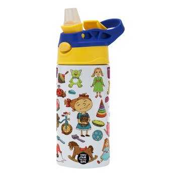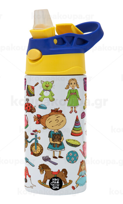 Toys Girl, Children's hot water bottle, stainless steel, with safety straw, green, blue (360ml) BPA FREE