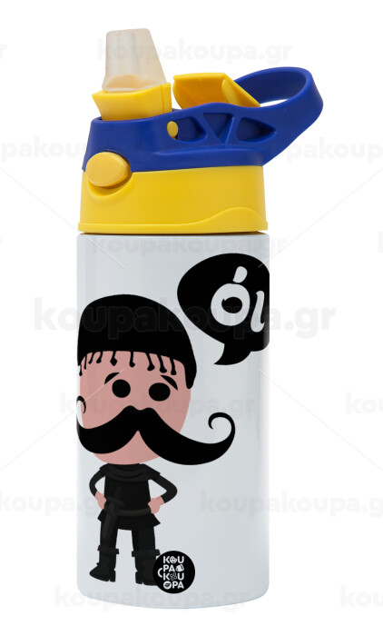 Κρητικός "Οι", Children's hot water bottle, stainless steel, with safety straw, green, blue (360ml) BPA FREE