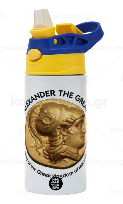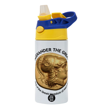 Alexander the Great, Children's hot water bottle, stainless steel, with safety straw, green, blue (360ml) BPA FREE