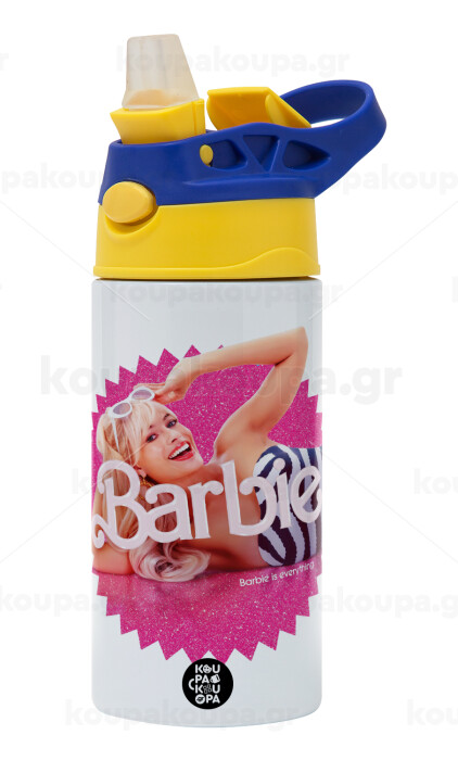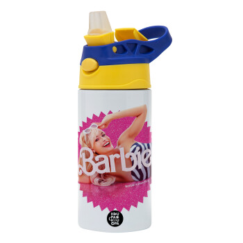 Barbie is everything, Children's hot water bottle, stainless steel, with safety straw, green, blue (360ml) BPA FREE