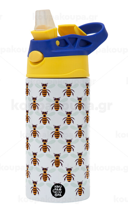 Bee, Children's hot water bottle, stainless steel, with safety straw, green, blue (360ml) BPA FREE