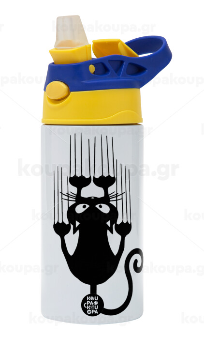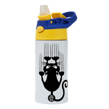 Cat scratching, Children's hot water bottle, stainless steel, with safety straw, green, blue (360ml) BPA FREE