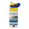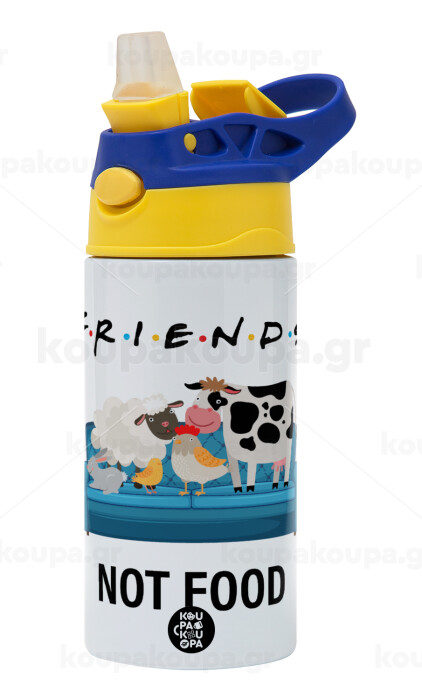 friends, not food, Children's hot water bottle, stainless steel, with safety straw, green, blue (360ml) BPA FREE