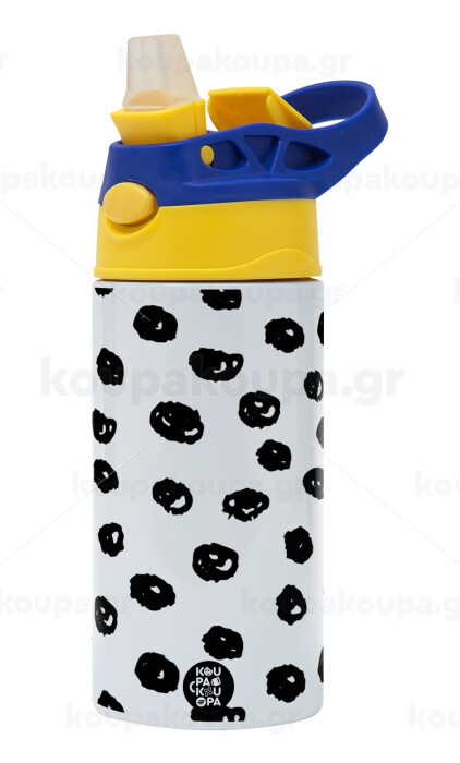 Doodle Dots, Children's hot water bottle, stainless steel, with safety straw, green, blue (360ml) BPA FREE