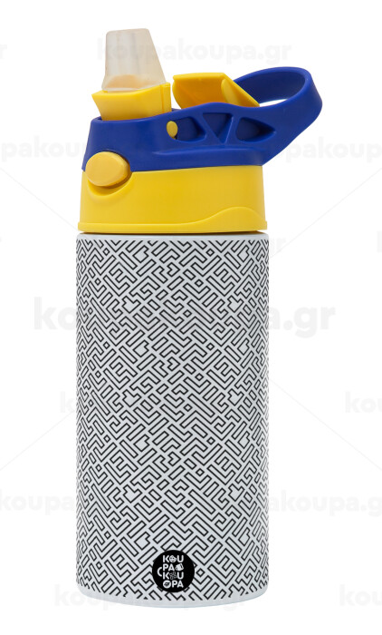 Doodle Maze, Children's hot water bottle, stainless steel, with safety straw, green, blue (360ml) BPA FREE