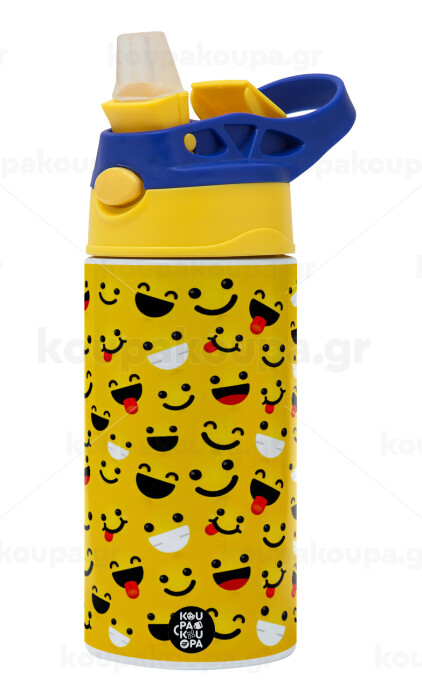 Smilies , Children's hot water bottle, stainless steel, with safety straw, green, blue (360ml) BPA FREE