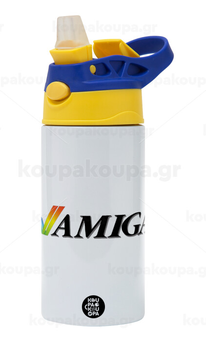 amiga, Children's hot water bottle, stainless steel, with safety straw, green, blue (360ml) BPA FREE